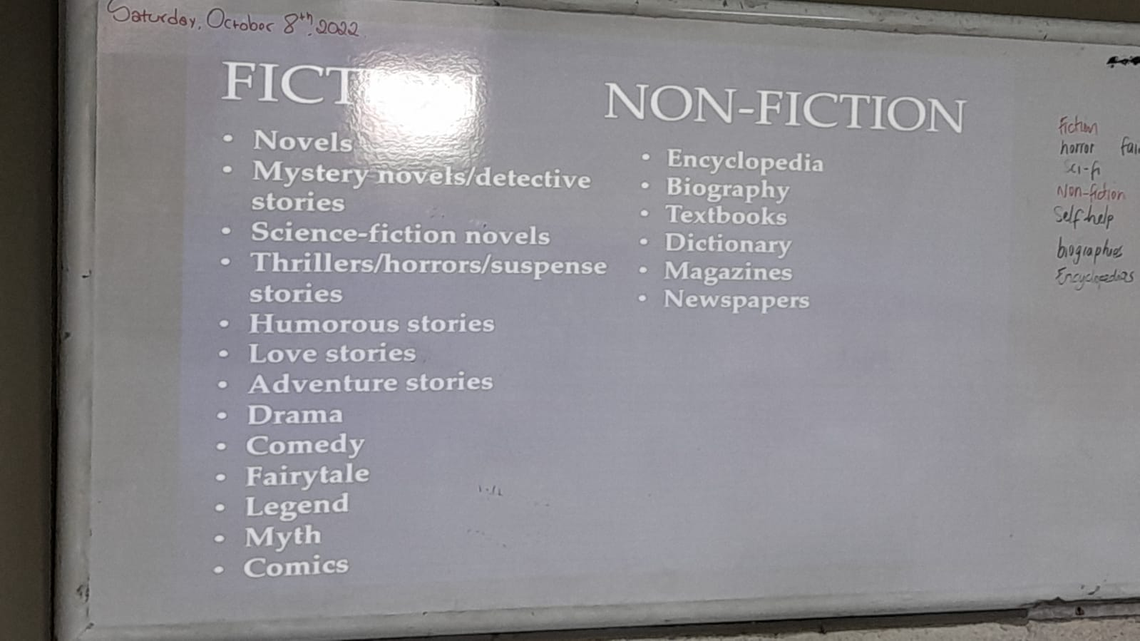 I come to tell you that we have dealt with new topics in class such as fiction and non-fiction in movies divided by genres.